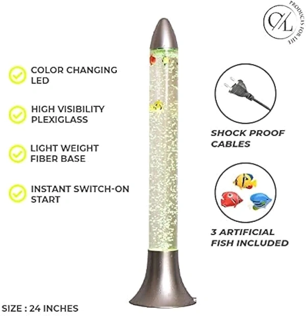 Patna Toys 24 inch Aqua Bubble Lava Lamp Artificial Aquarium with Fish Rocket Lamp Shape Multi Color Changing Light for Home Decoration Bedroom Living Room (24 Inch)