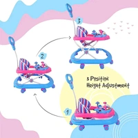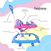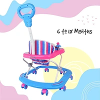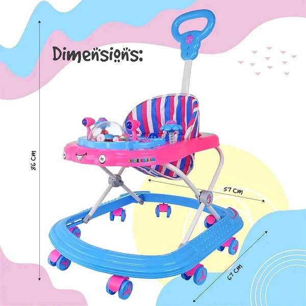 Donut Walker 6-18 Months | Height Adjustable Walker| Push Handle | Folding with Double Padded Seat | for Boys & Girls | Walker with Recreational Tray (Blue-Pink)