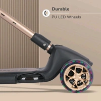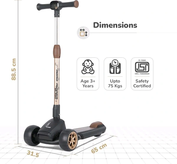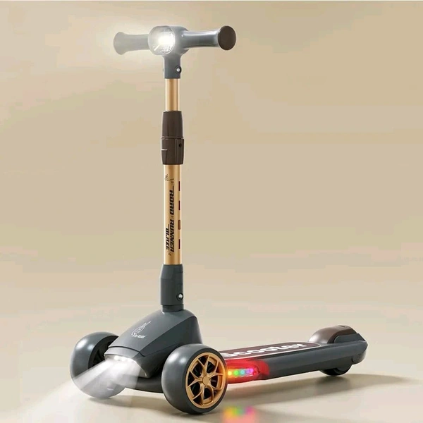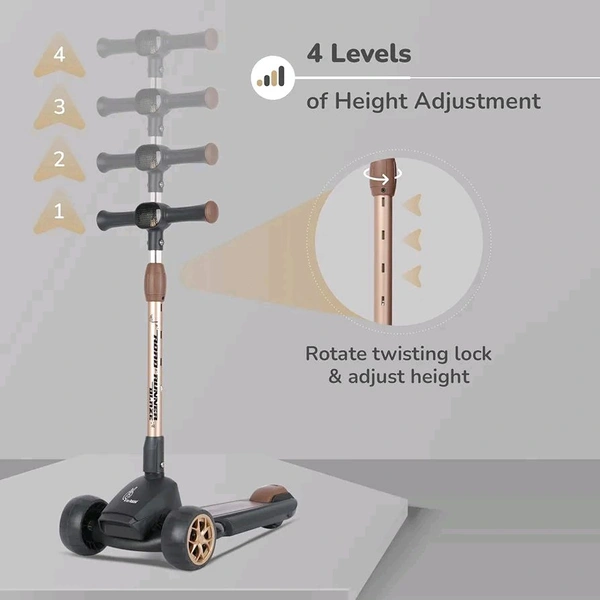 R for Rabbit Road Runner Blaze Foldable Kick Scooter for Kids with 4 Level Adjustable Height, PU LED Wheels, Lights and Music for 3+ Years Baby Boy & Girl of Upto 75kg Weight (Black Gold)
