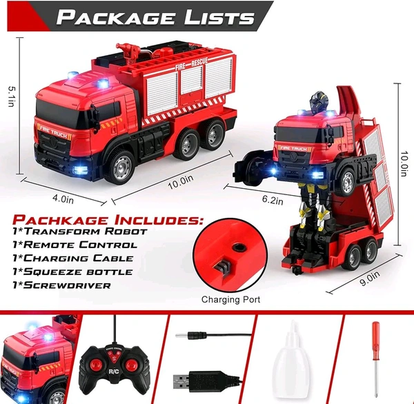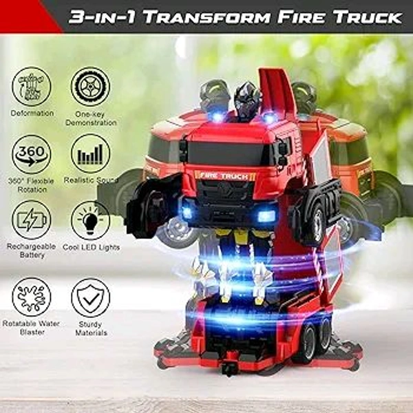 Fire Truck Transform Remote Control Truck, RC Truck with Water and Lights&Sound, Fire Engine Transformer Toys for 4 5 6 7 8 Year Old Kids Toddlers Boys Girls