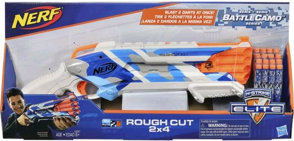 Nerf N-Strike Elite Rough Cut 2x4 Battle Camo Series Dart Blaster, 16 Battle Camo Series Darts, Slam Fire, 8Y+
