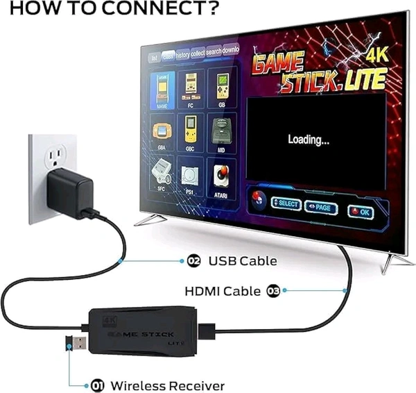 Patna Toys 4K Ultra HD TV Video Games Console Stick 2.4g Wireless Gamepad Controller USB Built-in 21000+ Classic Wireless Console Stick 8 Bit Mini Retro Controller HDMI Output Dual Player Plug in Play