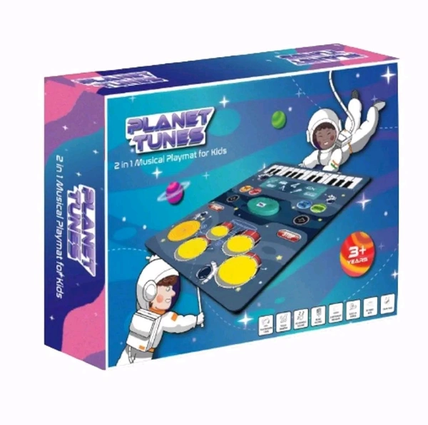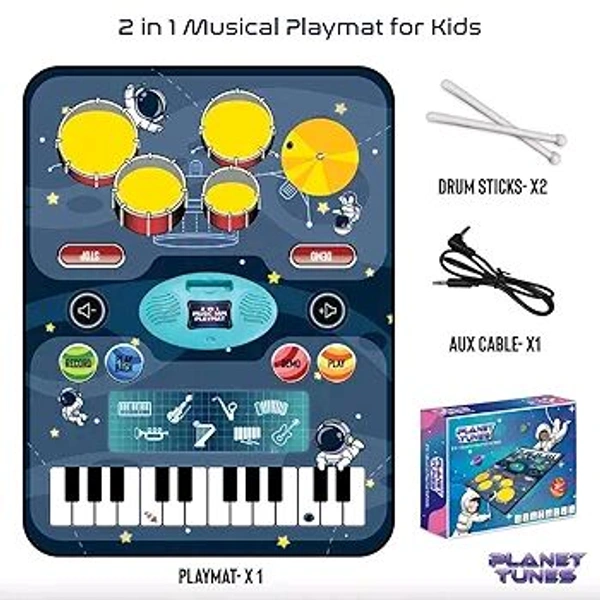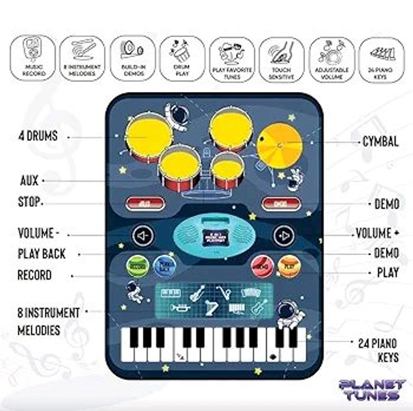 Patna Toys Tune Drum & Piano Combo Educational Musical Play Mat with 8 Musical Instruments Piyano Band Magic Kit 24-Key Keyboard, Built-in Speaker, Record Function- Multi Color
