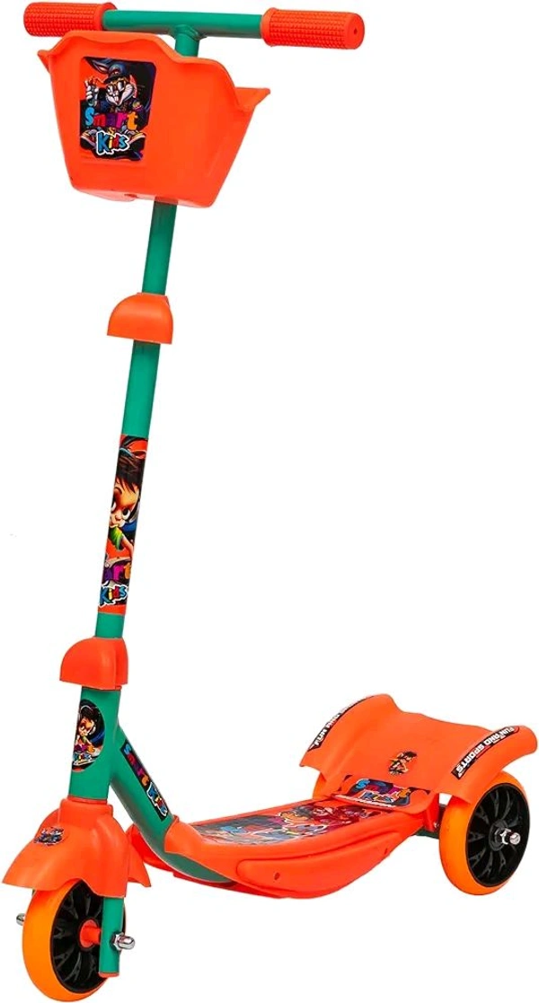 Smart Kid Kick Scooter for Kids | 3 Adjustable Height Scooter, Foldable & Attractive | PVC Wheels with Rare Brakes for Boys & Girls | Age Upto 3+ Years (Orange)