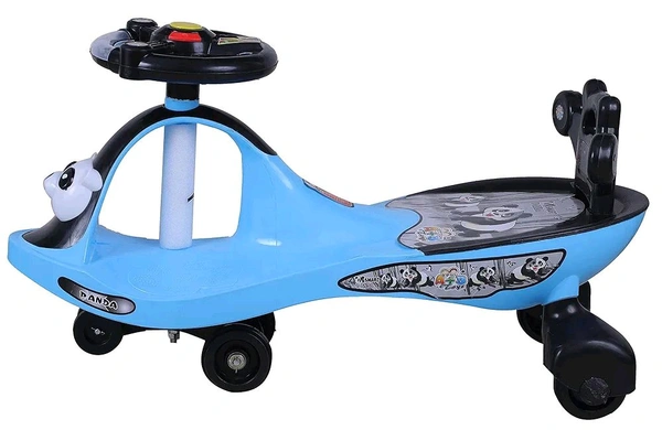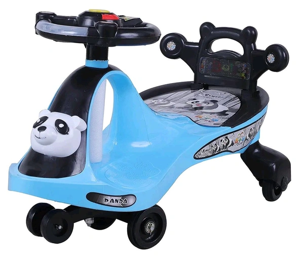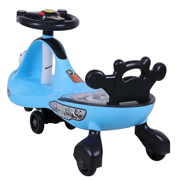 Smart Panda Swing Car for Kids 1-5 Years| Magic Car with Light & Music | Twister Car with Back Support | Panda face| Comfortable & Durable Seat - Sky Blue